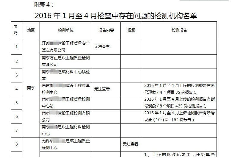 江蘇省建設(shè)工程質(zhì)量檢測(cè)遠(yuǎn)程監(jiān)控月報(bào)(2016年第1期)情況通告