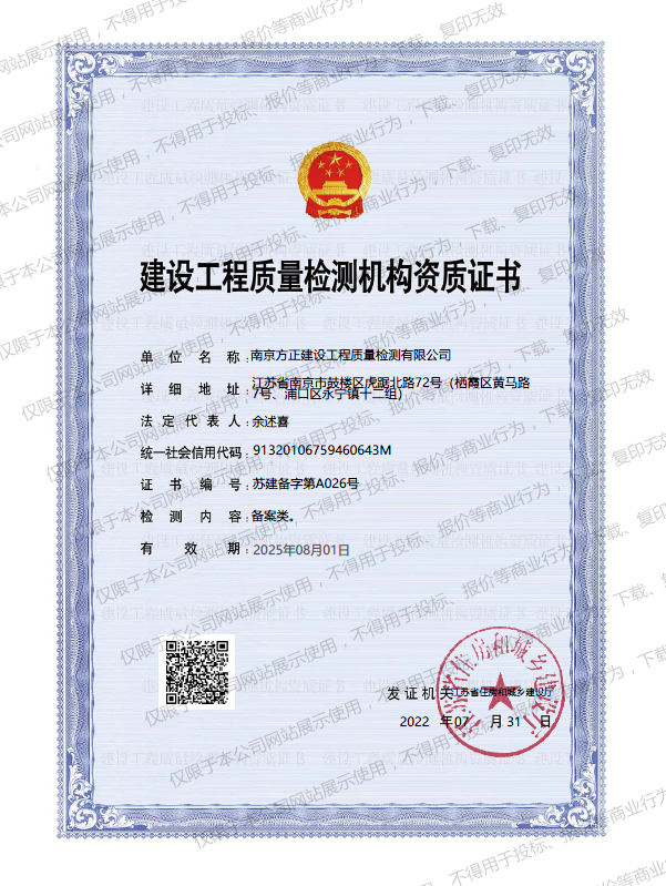 Copyright © 2018 南京方正建設(shè)工程質(zhì)量檢測有限公司 版權(quán)所有  蘇ICP備19059728號-1 技術(shù)支持:雨澤網(wǎng)絡(luò)